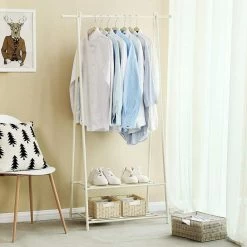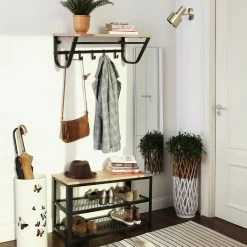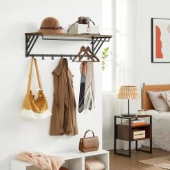ACAZA Hangende Kapstok Met Plank, 7 Haken En Bar Voor Hangers, Industrieel