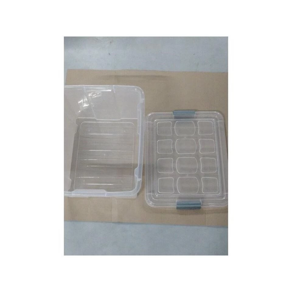 1x stuks Opslagbakken/organizers met deksel 25 liter 42 cm. Transparante opbergbakken met deksel welke is voorzien van grijze sluitclips. Handig voor het opbergen van spullen. Inhoud: ca. 25 liter. Formaat: 42 x 36 x 25 cm. Materiaal: kunststof (plastic).
