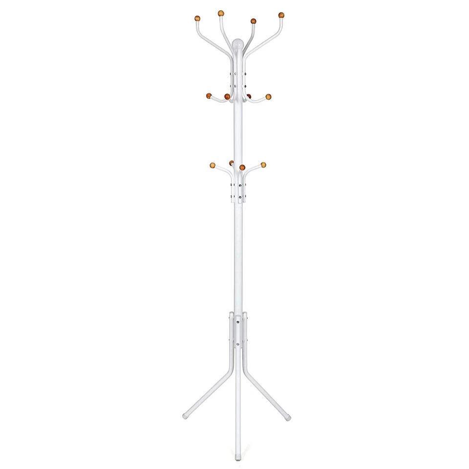 Deze elegante, moderne kapstok heeft een mooi witte kleur en een twaalftal opberghaken.