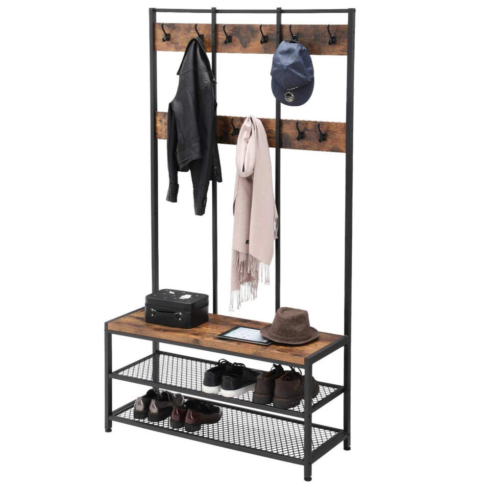 Met twaalf haken en twee legbladen voor schoenen kan je alvast het een en ander verzamelen. Sjaals, jassen, schoenen, hoeden, tassen, haast alles kan voortaan op één en dezelfde plek!
