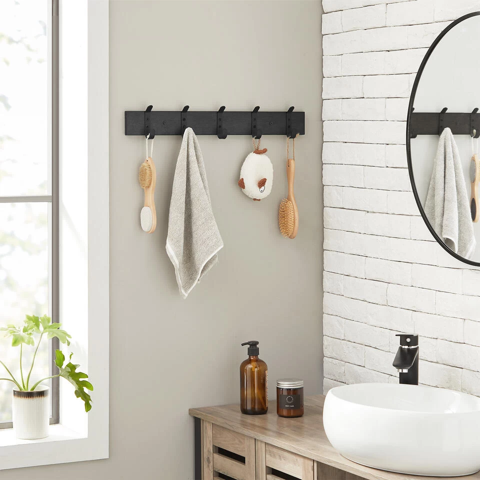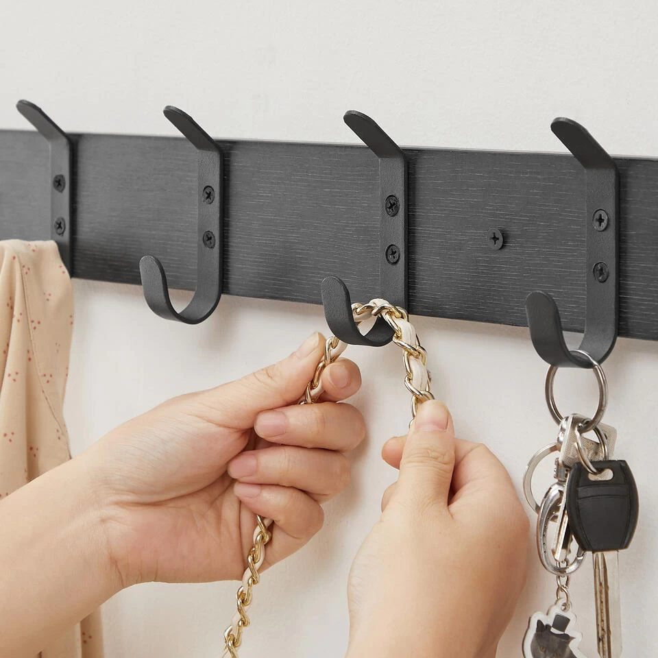 De haken zijn slim geplaatst zodat u 2 van deze kapstokken naast elkaar kan monteren. U kan deze wandkapstok eveneens combineren met de variant met 3 of 8 haken.