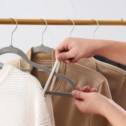 – ANTI-SLIP : de kledinghangers hebben een fluwelen voering. Hierdoor zal je kledij blijven hangen en niet van de kledinghanger afglijden.