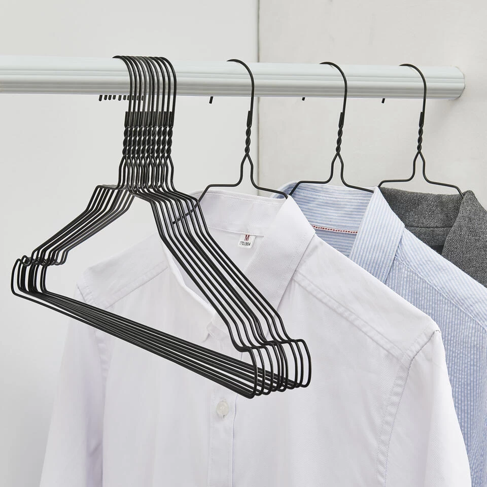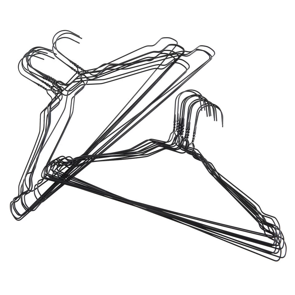 Breng orde in jouw kledingkast met deze fijne kledinghangers van ACAZA. Door het extra-dunne design (0,2 cm dik) nemen ze weinig plaats in jouw dressoir. De mat zwarte afwerking van deze set van 60 metalen hangers zal je zeker bekoren.
