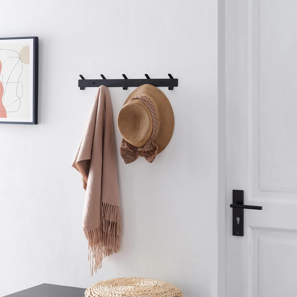 Weet je niet waar je jouw keukenhanddoeken moet hangen? Heb je geen plaats voor jassen jouw hal? Deze wandkapstok van ACAZA biedt de oplossing. De 5 dubbele haken zorgen voor praktisch gebruiksgemak. De zwarte stalen afwerking geeft deze hangende kapstok een strak design.