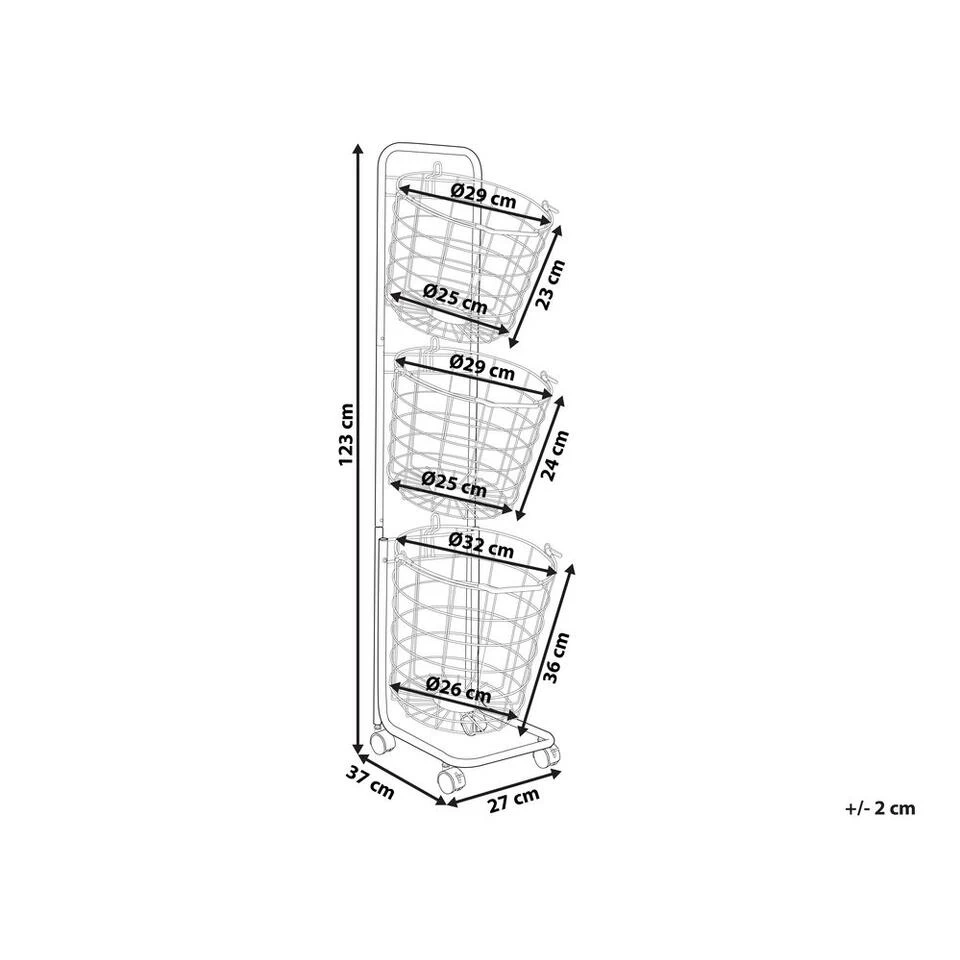 Witte mandstandaard in een set van 3 op wielen. Mis je een beetje opbergruimte in de badkamer of in de keuken? Wil je je keukengerei, handdoeken en kleine voorwerpen altijd bij de hand hebben? Dan is deze mandstandaard voor jou gemaakt. De drie ronde manden van gepoedercoat metaal zijn extreem ruim en kunnen ook los van de standaard worden verwijderd. Dankzij de bijgevoegde kunststof wieltjes is de standaard gemakkelijk overal te plaatsen.