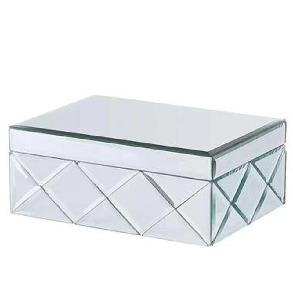 Decoratieve, zilverkleurige sieradendoos . Deze spiegelende sieradendoos is een onmisbaar woonaccessoire voor iedereen met sieraden. De juwelendoos heeft een chique en charmante uitstraling en is een uiterst praktische toevoeging aan elke kamer. Het is perfect voor het opbergen van sieraden en staat geweldig op elk dressoir.