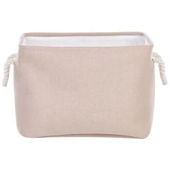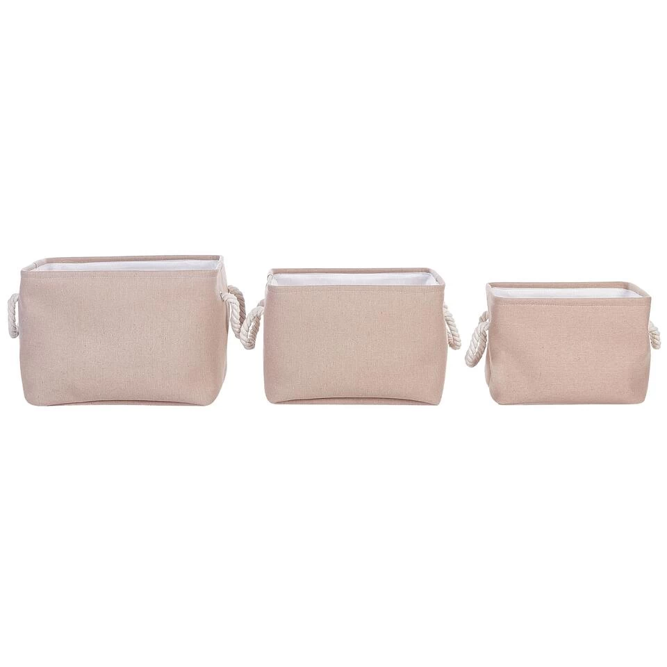 3-delige opbergmandenset. Deze set opbergmanden past dankzij het universele en eenvoudige ontwerp in elk interieur. Ze zijn verkrijgbaar in drie verschillende maten en passen op de meest noodzakelijke kleinere of grotere spullen. Gevlochten handgrepen geven ze een maritiem karakter, waardoor ze er geweldig uitzien op open planken.