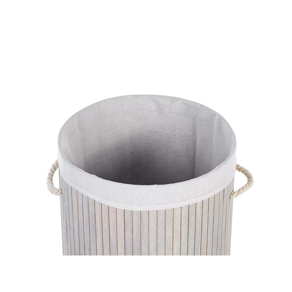 Wasmand met afneembaar deksel en handgrepen. Organiseer al je wasgoed of berg andere spullen op in deze stijlvolle, handgemaakte mand. Het is gemaakt van bamboehout aan de buitenkant en hoogwaardig polyester aan de binnenkant, en is vrij duurzaam en gemakkelijk te onderhouden. De mand wordt geleverd met een afneembaar deksel en handgrepen, waardoor je hem gemakkelijk kunt verplaatsen. Wanneer het stuk niet in gebruik is, kan het worden opgevouwen en opgeborgen.