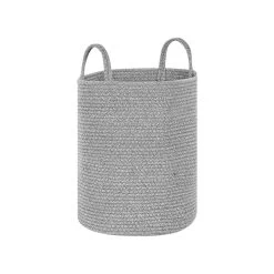 Handgemaakte katoenen opbergmanden set. Deze set van 2 manden gemaakt van katoenen touw, zullen je helpen om je ruimte op te ruimen en te organiseren. Met praktische handvaten zodat je ze gemakkelijk kan verplaatsen. De manden zijn perfect als extra opbergruimte voor dekens en kussens in je slaapkamer of om speelgoed in op te ruimen in een kinderkamer.