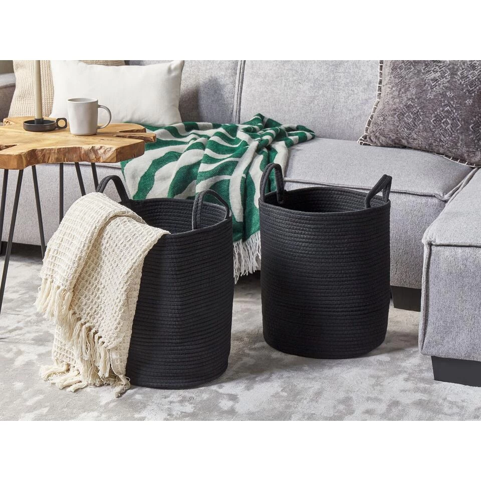 Handgemaakte katoenen opbergmanden set. Deze set van 2 manden gemaakt van katoenen touw, zullen je helpen om je ruimte op te ruimen en te organiseren. Met praktische handvaten zodat je ze gemakkelijk kan verplaatsen. De manden zijn perfect als extra opbergruimte voor dekens en kussens in je slaapkamer of om speelgoed in op te ruimen in een kinderkamer.