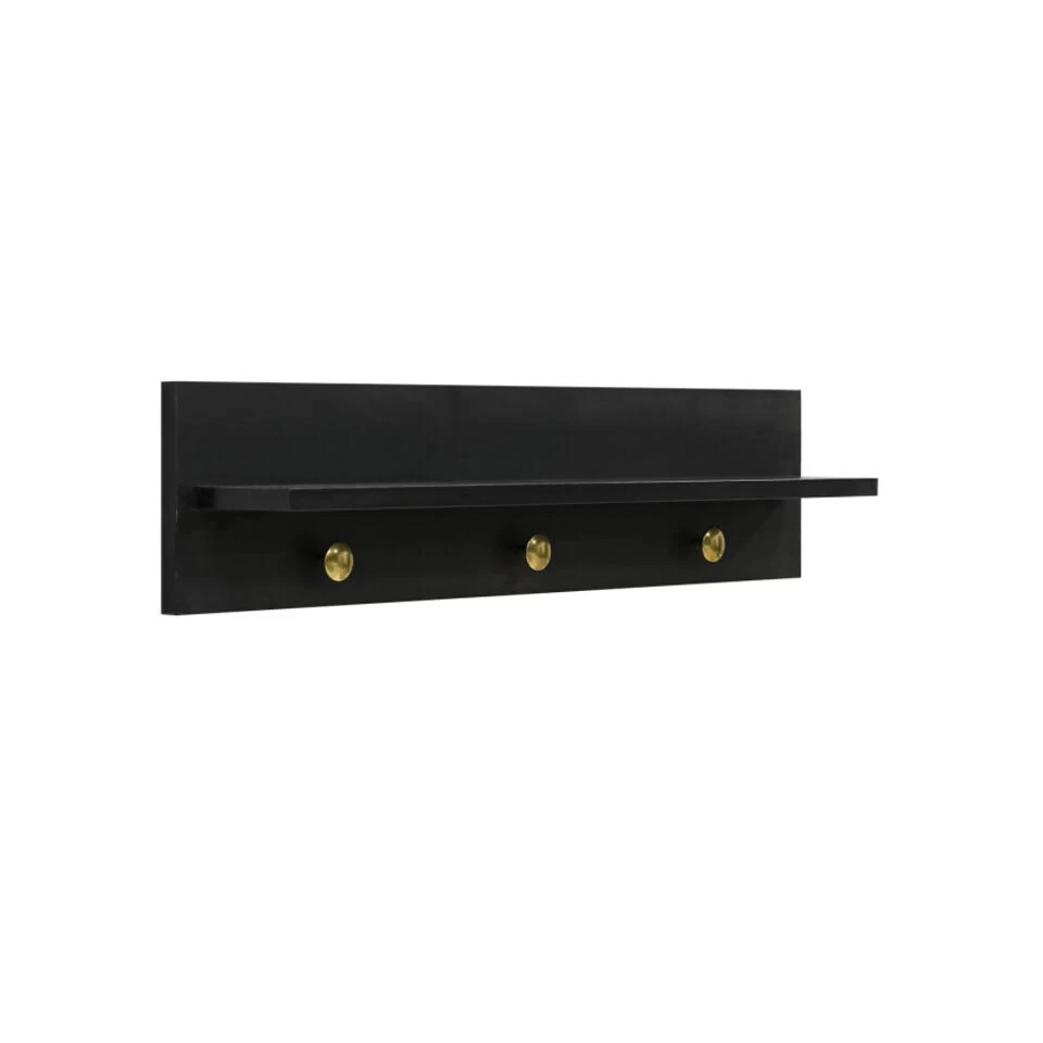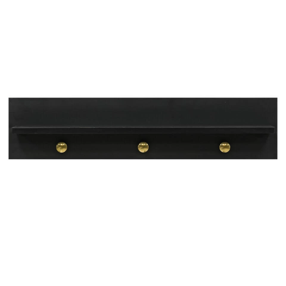 Wandrek Cloë is ideaal voor boven de commode om benodigdheden of accessoires in de buurt te hebben op een plankje. De combinatie van goudkleurige knoppen en mat zwart geeft Cloë een warme luxe uitstraling. Dit wandrek is aan de muur te bevestigen, exclusief schroeven.