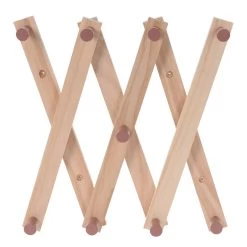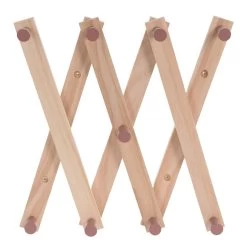 Kinderkamer deurhanger/kapstok verstelbaar met 9 bruine haakjes van hout totale lengte ca. 60 x 12 cm. Doordat de kapstok verstelbaar is kan het breed of juist wat smaller opgehangen worden, ideaal voor in bijvoorbeeld een kinderkamer. De kapstok is gemaakt van hout en heeft bruine ophanghaakjes. Afmeting: 60 x 12 x 5 cm. Kapstokken/deurhaken voor kinderkamers.