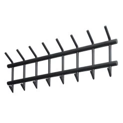 Deze kapstok heeft een ronde buis, uitgevoerd in donkergrijs mat gepoedercoat staal. In totaal heeft dit model 8 gelaste haakjes, die zowel aan de bovenkant als aan de onderkant een ophangmogelijkheid hebben. De stoere kapstok wordt opgebouwd geleverd. Vervolgens is hij middels 2 bevestigingsogen eenvoudig aan de wand te monteren.