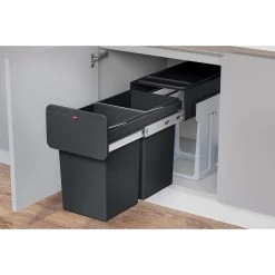 Gemakkelijk afval scheiden met de inbouwprullenbak met afvalscheidingssysteem van Hailo. Deze inbouwprullenbak kan volledig worden uitgeschoven zodat je heel gemakkelijk bij beide bakken kan. De 2 binnenemmers hebben ieder een inhoud van 14 liter en zijn gemaakt van 100% gerecycled plastic.