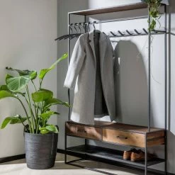 Of je nu op zoek bent naar een functionele oplossing voor een kleine hal of een opvallend designelement voor een grote entree, deze mangohouten kapstok met metalen haken biedt de perfecte combinatie van stijl en functionaliteit.