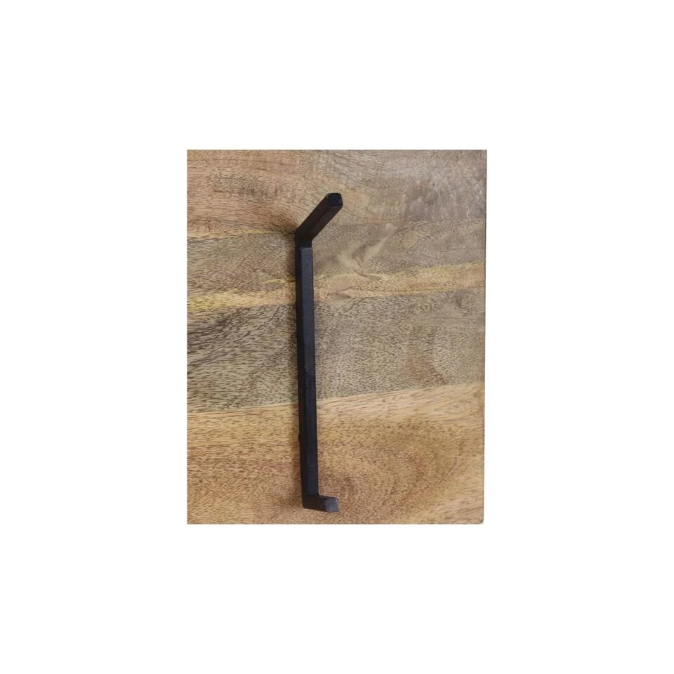 Op zoek naar een kapstok die niet alleen functioneel is, maar ook een stoere uitstraling heeft? Dan is deze mangohouten kapstok met metalen haken zeker iets voor jou! Het gebruik van natuurlijk mangohout betekent dat elke kapstok uniek is en kleine kleurvariaties kan vertonen, wat alleen maar bijdraagt aan de charme van het product.