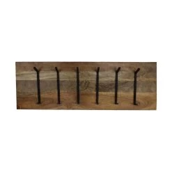 Met 6 sterke metalen haken biedt deze kapstok voldoende ruimte om jassen, tassen en andere accessoires op te hangen. De combinatie van het warme mangohout en het robuuste metaal geeft deze kapstok een unieke uitstraling die past bij elk interieur. De totale breedte van de kapstok is 90 cm, de totale hoogte is 30 cm en de kapstok komt 11 cm van de muur af.