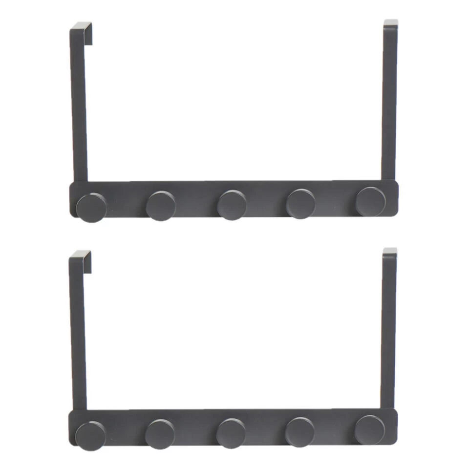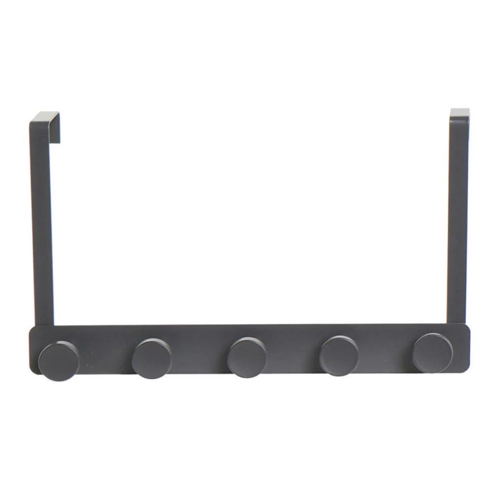Deurkapstok/rek zilver. De kapstok heeft 5 ophangknoppen is enkel geschikt voor een stompe deur met een maximale dikte van 4 cm. Afmeting: ca. L34 x B6 x H20 cm. Materiaal: metaal.