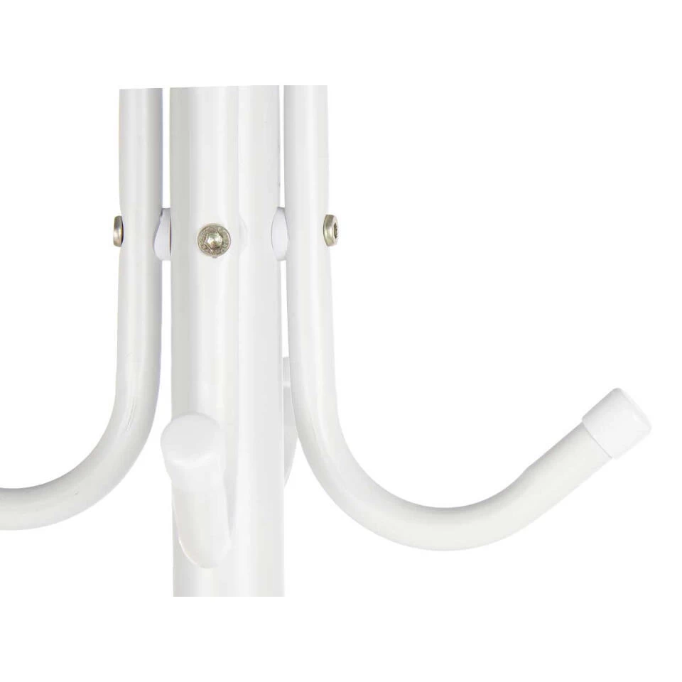 Een Witte staande 3-poots kapstok, met een totale hoogte van ca. 175 x 48 cm. Aan de bovenkant is ruimte voor bijvoorbeeld 4 hoeden of petten en daaronder kunnen 4 jassen of tassen hangen. Materiaal: Metaal.