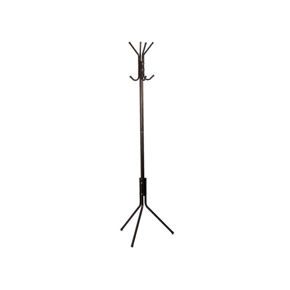 Een zwarte staande 3-poots kapstok, met een totale hoogte van ca. 175 x 48 cm. Aan de bovenkant is ruimte voor bijvoorbeeld 4 hoeden of petten en daaronder kunnen 4 jassen of tassen hangen. Materiaal: Metaal.