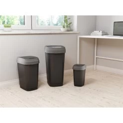 De Kis Dual Swing Afvalbak is een praktische en compacte afvalemmer. De prullenbak heeft een deksel met dubbele openingsmogelijkheid: de deksel heeft zowel een swing functie als een scharnier zodat de volledige deksel geopend kan worden. Hierdoor heeft de deksel een grote opening en daardoor is de afvalemmer handig in gebruik. Door de brede dekselrand is de vuilniszak niet te zien aan de buitenkant.
