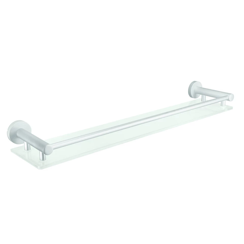 Kleine Wolke – Planchet Apollo – milky is gemaakt van glas, gecombineerd met een aluminium houder en heeft een afmeting van 61,0×6,2×13,1cm. Glas is een eeuwen oud product dat ontzettend veelzijdig is. Glas is 100% recyclebaar en daardoor milieuvriendelijk, kras vast en uitermate geschikt om huishoudelijke artikelen, zoals badkameraccessoires, van te maken.