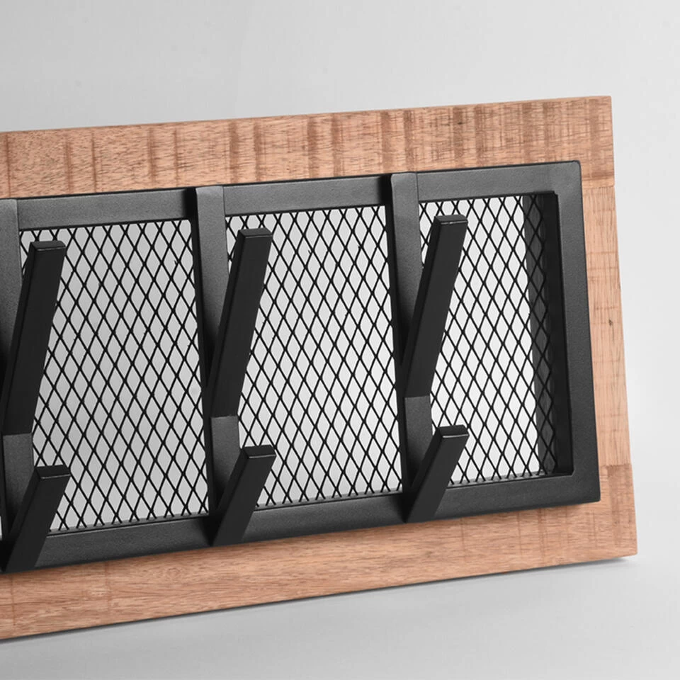 Industriële Kapstok Levi Massief Hout 5 Haken Horizontaal 9x60x15 Cm Hout