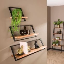 Geniet van het stoere en natuurlijke karakter van Leona wandschap acaciahout naturel set van 3 ! Dit unieke meubel komt uit de collectie van het woonmerk Fraaai. De drie planken zijn voorzien van een stevig metalen frame met een zwarte poedercoating als afwerking. Opvallend aan dit frame is de ruwe en oneffen look voor een stoere touch. De frames kunnen gemakkelijk bevestigd worden aan de muur. Het bevestigingsmateriaal wordt niet meegeleverd omdat iedere muur vraagt om ander materiaal. Verder is dit exemplaar uitgevoerd in naturelkleurig acaciahout met prachtige kleurschakeringen. Plaats wandschap Leona in de woonkamer of slaapkamer en combineer hem ook met het matchende Leona nachtkastje of TV-meubel voor één geheel in uw interieur. Het maximale draaggewicht is 125kg. Afmetingen: 30x25x30cm, 65x25x30cm en 100x25x30cm.