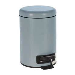 Grijs blauwe vuilnisbak/pedaalemmer 3 liter. Een grijs blauwe vuilnisbak/vuilnisemmer/pedaalemmer/prullenbak, met pedaal opening/sluiting. De vuilnisbak heeft een kunststof verwijderbare binnen emmer met handvat. Afmeting: ca. D17 x H25 cm. Materiaal: metaal/kunststof.