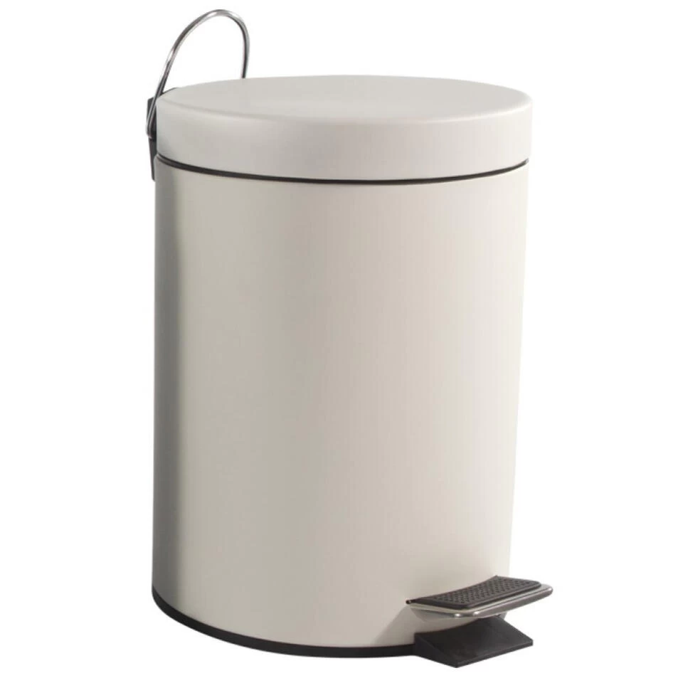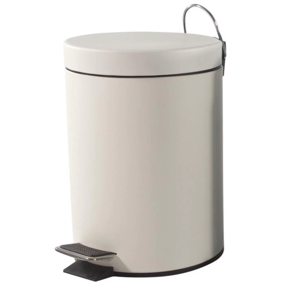 Pedaalemmer/prullenbakje 3 liter wit. De prullenbak heeft een pedaal opening/sluiting en een matte finish. Afmeting: D21 x H30 cm. Materiaal: roestvrijstaal (RVS).