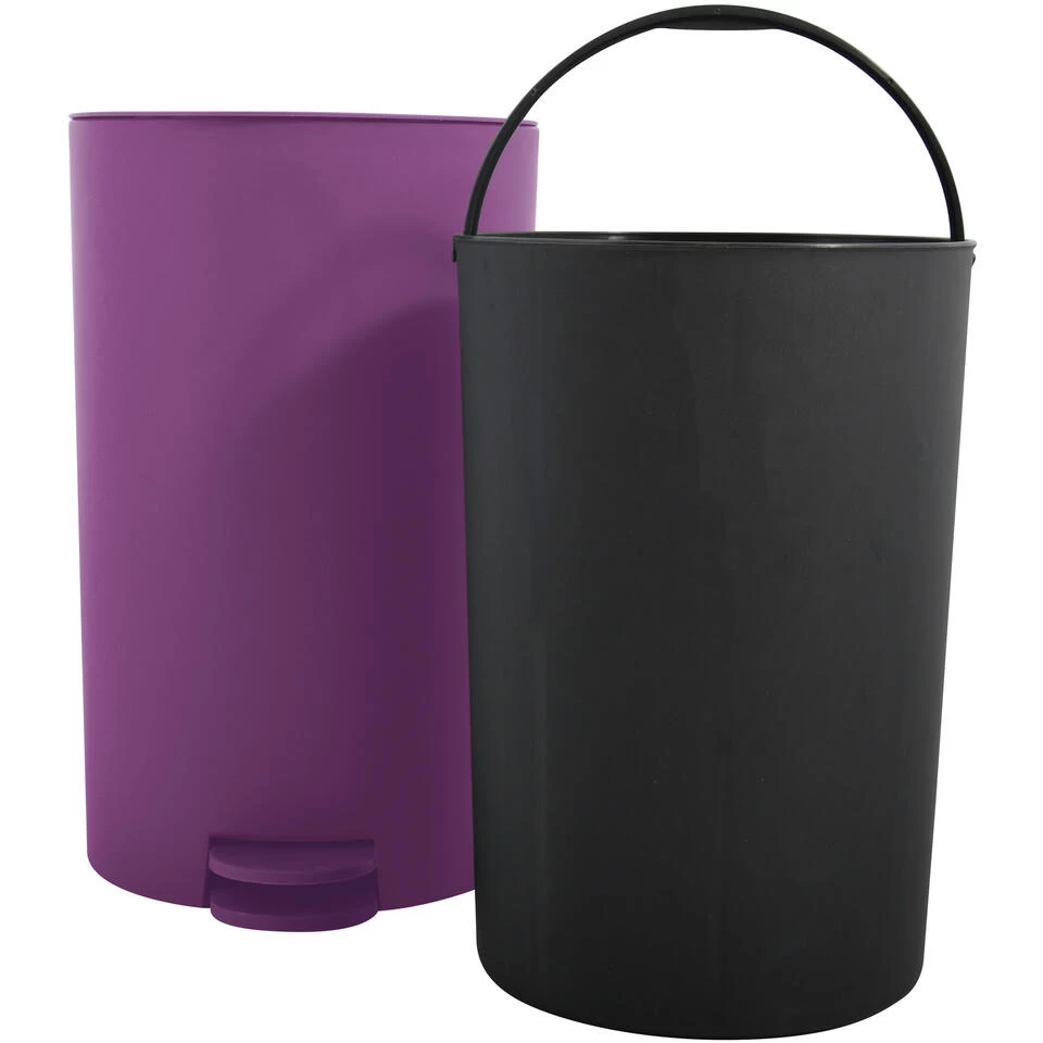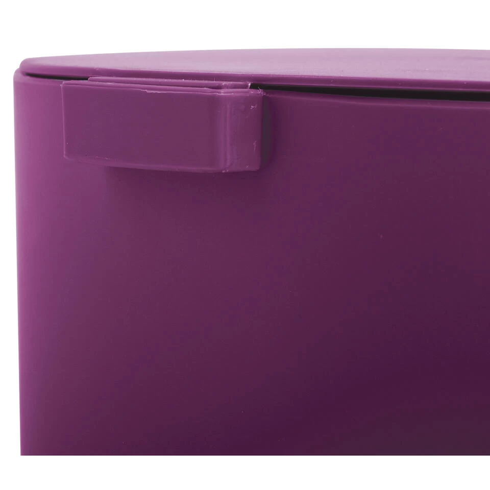 Pedaalemmer voor badkamer en toilet, klein model met inhoud 3 liter, kleur paars. Deze prullenbak is gemaakt van kunststof(polypropyleen) en heeft een formaat van ca. L15 x H27 cm. Deze kleine pedaalemmers hebben een uitneembare binnenbak. De deksel heeft dezelfde kleur. Robuust en makkelijk te legen. Afvalemmers, pedaalemmers en prullenbakken.