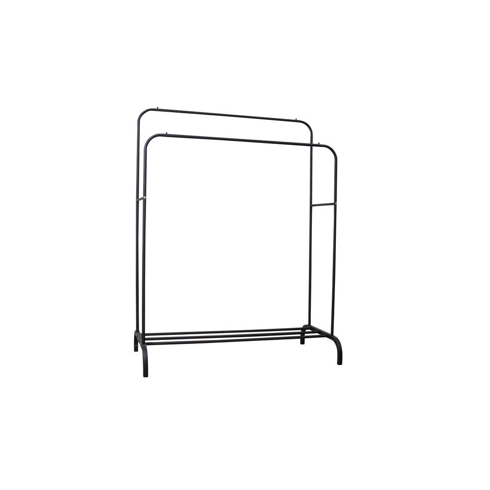 KLEDINGREK MET DUBBELE STANG MET SCHOENENREK: Dit garderoberek is uitgevoerd met een dubbele buis op verschillende hoogtes. Omdat dit kledingrek metaal 110cm breed is heeft meer dan voldoende ruimte om al uw kleding op te hangen. Daarbij heeft dit kledingrek ook nog eens een schoenen rek aan de onderkant die ruimte bied voor 4 a 5 paar schoenen.
