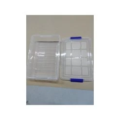 Opslagbak/organizer met deksel 5 liter transparant met formaat 26 x 40 x 8,5 cm. Transparante opbergbakken met deksel welke is voorzien van blauwe sluitclips. Handig voor het opbergen van spulletjes. Inhoud: ca. 5 liter. Materiaal: kunststof (plastic).
