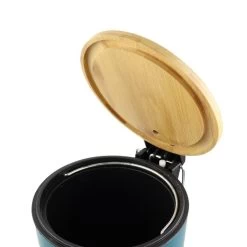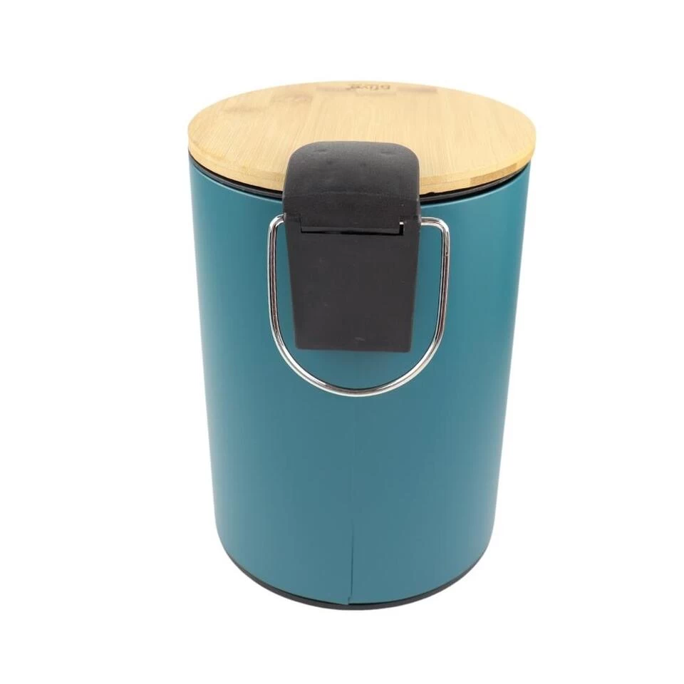 De prullenbak van Orange85 is geschikt voor 3 L aan afval. Het is een pedaalemmer en wordt niet geleverd met zakken. De prullenbak is rond van vorm en is blauw van kleur. De pedaalemmer is gemaakt van metaal en bamboe.