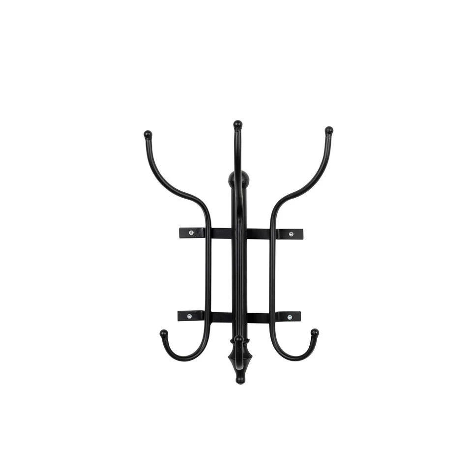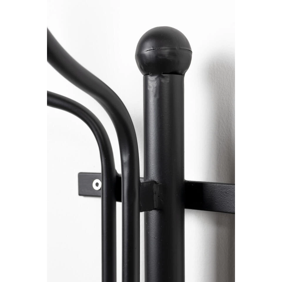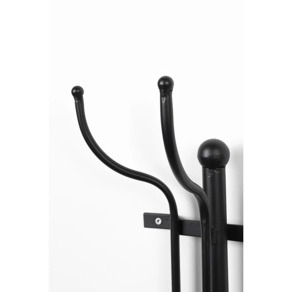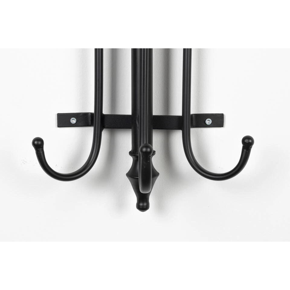 De klassieke kapstok Ran is een zwart metalen kapstok, met zes haken. De onder- en bovenkant zijn afgewerkt met sierlijke details, wat ervoor zorgt dat deze kapstok chic oogt. Je bevestigt de kapstok aan de muur met vier schroeven. Hang er je favoriete sjaal, jas of tas aan en de kapstok maakt je muur een stuk leuker!