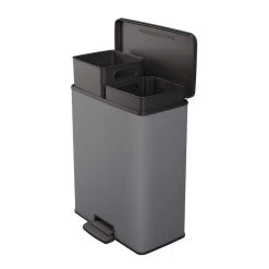 Pedaalemmer Deco bin is een neutrale afvalbak in een grijze kleur. Hierdoor past hij in ieder interieur en zet je hem gemakkelijk in de keuken of in de bijkeuken. De pedaalemmer is gemaakt van kunststof en heeft een inhoud van 2x26L, biedt de bak voldoende ruimte voor afval!