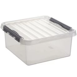 De 18L Q-line opbergbox is een simpele maar functinele opbergbox van gemiddeld formaat. Je kunt er een grote variatie aan spullen in opbergen. Denk bijvoorbeeld aan handdoeken, wat kledingstukken, speelgoed, leesboeken, papieren, maar ook speelgoed zoals lego, duplo en playmobil etc.