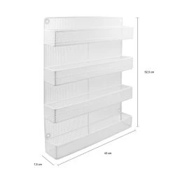 Met het ophangbare QUVIO stalen kruidenrek zet je al jouw kruiden netjes op een rij. Vanaf nu vind je de juiste kruiden voor elk gerecht zonder tijdsverlies. Er passen minimaal 32 kruidenpotjes op het rek. Het kan niet anders,het rek brengt een einde aan alle mogelijke kruiden-chaos. Eindelijk geen gerommel meer met al die losse potjes. Plaats ze soort bij soort of kleur per kleur. Het is wat voor jou het beste werkt. Het rek is plaat besparend en gemakkelijk te bevestigen met de bijgevoegde schroeven. Het ophangen is dan ook een eitje. Hang hem aan de muur of verwerk ‘m in een keukenkastje. Zo wordt ie een dressing voor iedere keukengoeroe. Het ziet er leuk uit en geeft ruimte voor de smalle potjes en ook die een bolle onderkant hebben. Het QUVIO stalen kruidenrek zit stevig in mekaar en is simplistisch modern. Zo gaat alle aandacht naar jouw kruidenassortiment. Waar je het rek ook bevestigd,het neemt slechts 7,5 x 43 x 52,5 cm (lxbxh) aan ruimte in beslag. Het rek biedt veel opbergruimte,maar neemt dus amper plaats in. Als dat niet getuigd van een overduidelijke win-win! En het moet gezegd zijn…slimme kastinrichting is een voordeel voor iedere kok.
