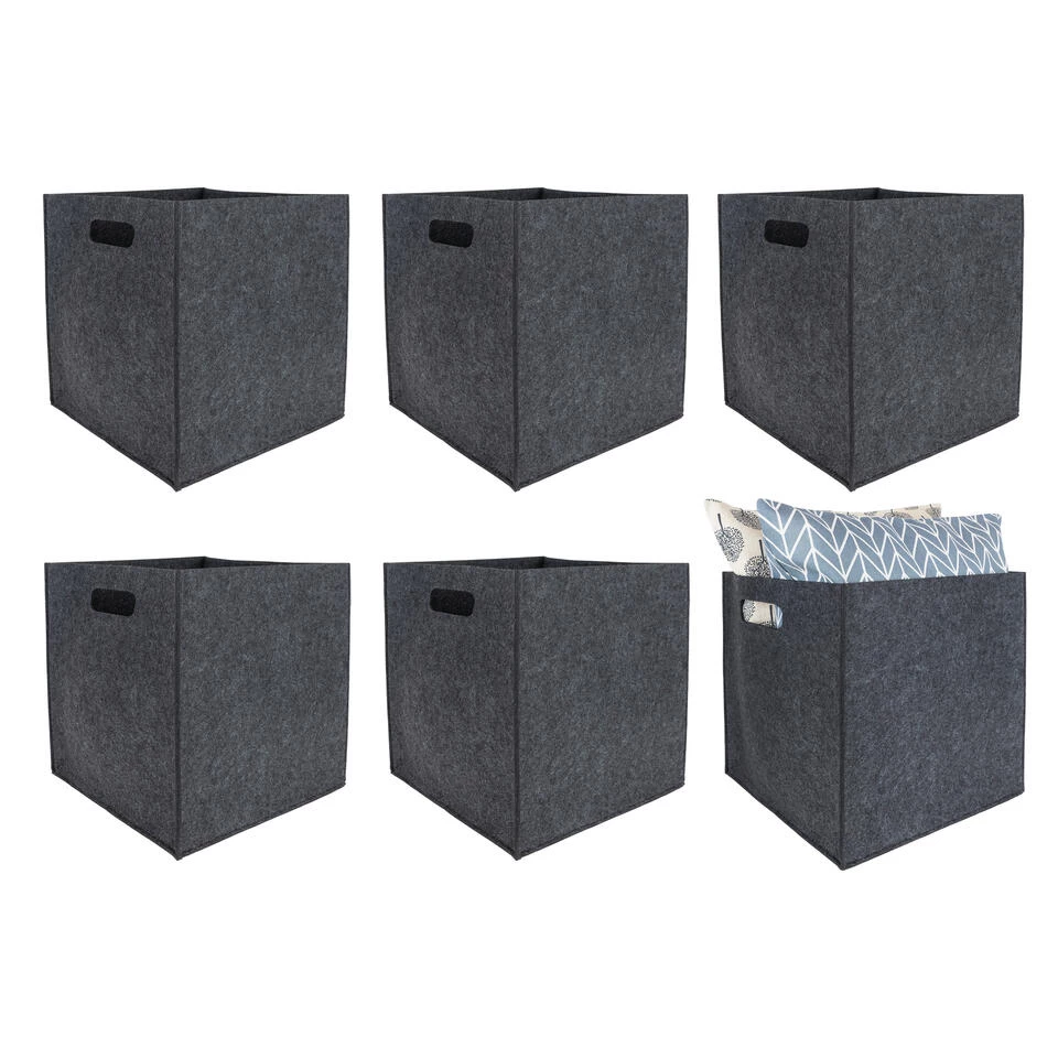 Een rommelig huis zorgt voor een rommelig hoofd. Je wordt snel afgeleid door alle losse spullen die rondslingeren. Bovendien ziet het er ook gewoon niet mooi uit. Goede opbergers zijn in huis dan ook onmisbaar. Heb jij nog nieuwe organizers nodig? Dan zijn deze grijze vilten opbergbakken van QUVIO een goed idee. De vierkante opbergmanden komen in een set van zes. Zo kun je er veel spullen in kwijt. De opbergmanden zijn praktisch in elke ruimte van je huis. Berg er bijvoorbeeld plaids, tijdschriften, kinderspeelgoed of kleding in op. Heb jij al een plekje voor deze opbergbakken in gedachten?