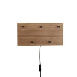 Deze kapstok wordt geleverd incl een zwart stoffen snoer met schakelaar. De hoogte is 20 cm en de totale breedte is 40 cm. De diepte zonder haken is 4,5 cm en met haken: 9,5 cm. Kleur hout: Eiken.