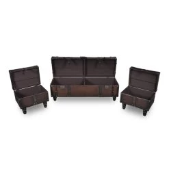 Deze opbergbankenset bestaat uit een lange opbergbank en 2 hockers. Hij heeft een elegante stijl in een rijke, donkerbruine afwerking en is de ideale keuze als aanvulling op je interieur.