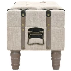 De opbergkist is gemaakt van massief vurenhout. Hij heeft een gevoerde zitting die bekleed is met een moderne stof en heeft stevige stalen poten. Er is voldoende ruimte om een groot aantal verschillende voorwerpen buiten het zicht maar toch binnen handbereik te houden. Dankzij de duurzame handgreep kan het bankje ook gemakkelijk in elke kamer verplaatst en geplaatst worden.