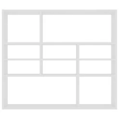Dit wandmeubel is gemaakt van bewerkt hout en is stevig en duurzaam. Het heeft 10 open vakken zodat er voldoende plek is voor het plaatsen van boeken, verzamelobjecten, foto’s, prijzen, potplanten, enz. Bovendien is dit meubel gemakkelijk schoon te maken met een vochtige doek.