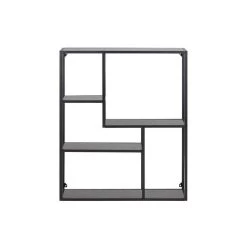 Wandrek Jaxx is een asymmetrisch wandrek met een industriële look. Het frame van de kast is gemaakt van zwart metaal en de planken zijn gemaakt van MDF. Deze kast heeft een speelse indeling en biedt veel opbergruimte voor bijvoorbeeld boeken en leuke woonaccessoires. Je kunt er ook mandjes in zetten waar je losse spullen in kunt opbergen. Kortom een multifunctioneel meubel!