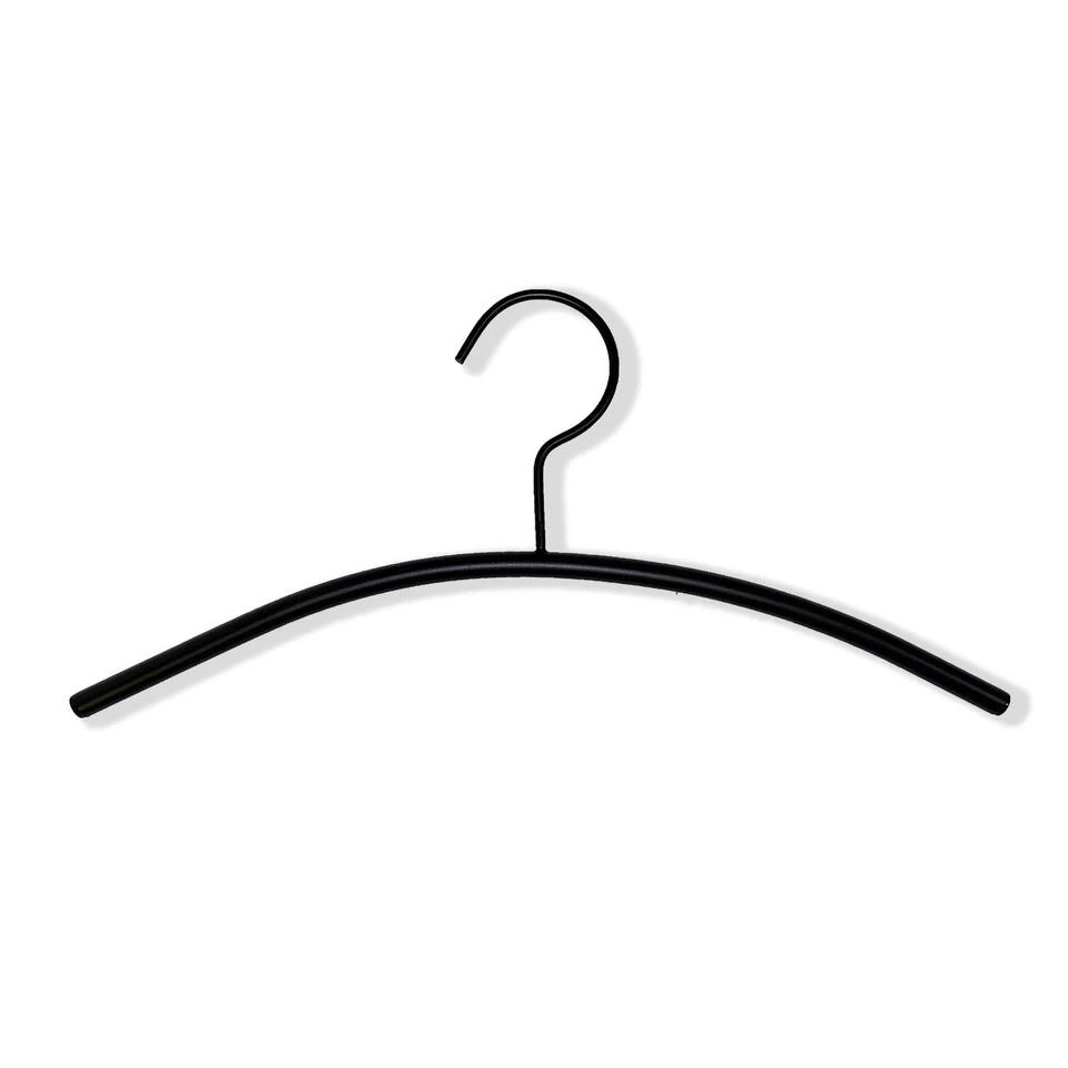 Set van 5 zwarte kleren hangers die speciaal gemaakt zijn voor de Big-Black en Small-Black kapstokken van Ylumen. Deze hangers zijn gefixeerd en niet draaibaar. De lengte is 43 cm en de hoogte is 20,5 cm. Kleur: mat-zwart gespoten metaal.
